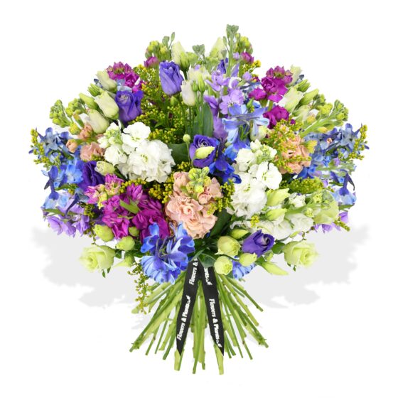 A sensational bouquet for the floral enthusiasts out there. This is a bouquet that throws caution to the wind and dances all night long. The question is, can you keep up? Enjoy this mix of coloured stocks and eucalyptus now.